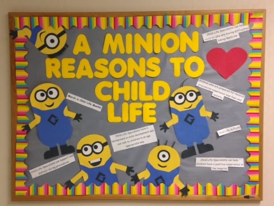 Allow your child life team to snag that coveted bulletin board and treat it as a blank canvas. They can then decorate it with child life facts, how child life impacts the hospital, and announce any special events being hosted for Child Life Month. Here are some board examples with witty titles like A Minion Ways to Child Life or popular characters like from Inside Out. Feature child life table tents, coloring pages, and placemats in lounges, waiting rooms, and the cafeteria to get the attention of staff, patients, and families.